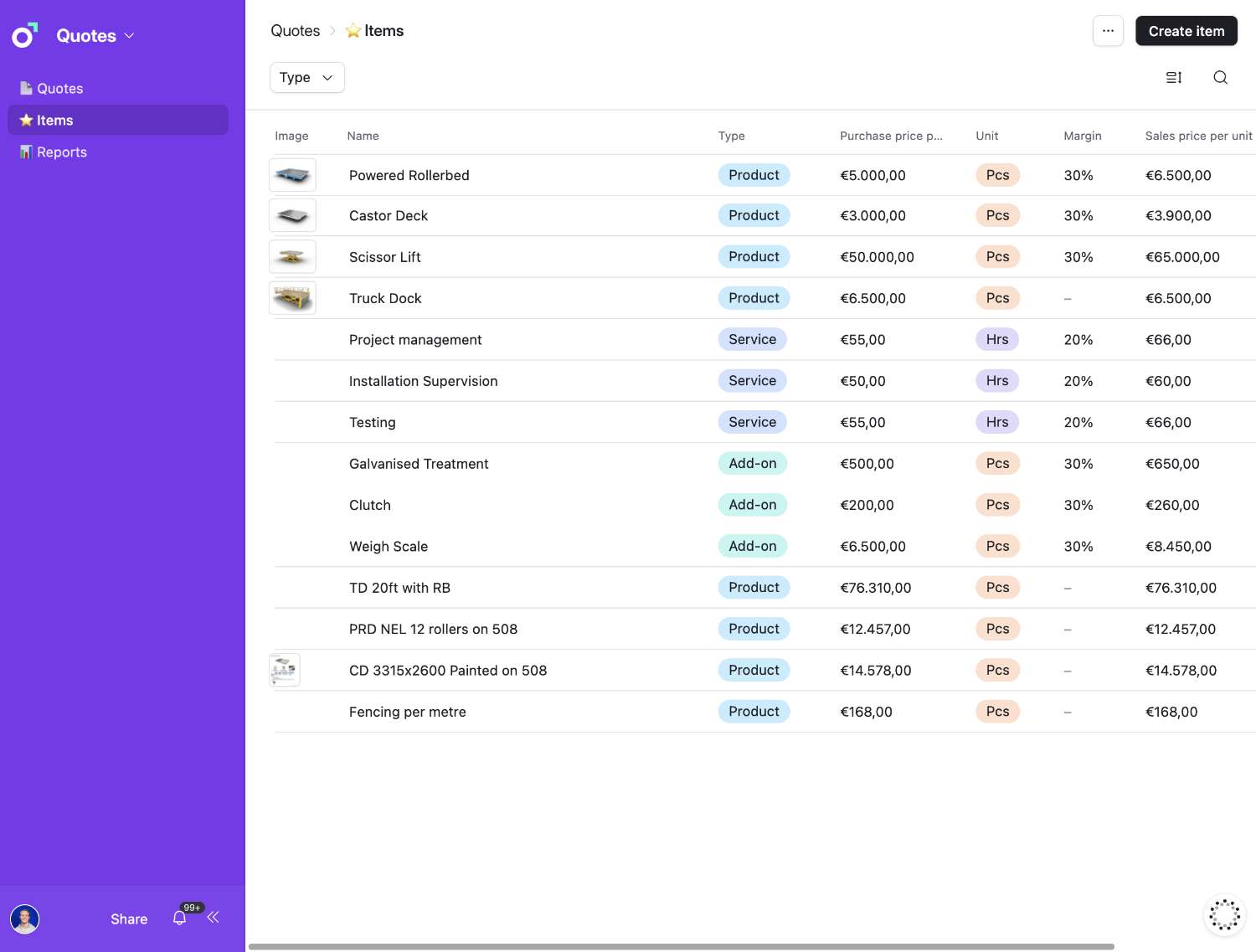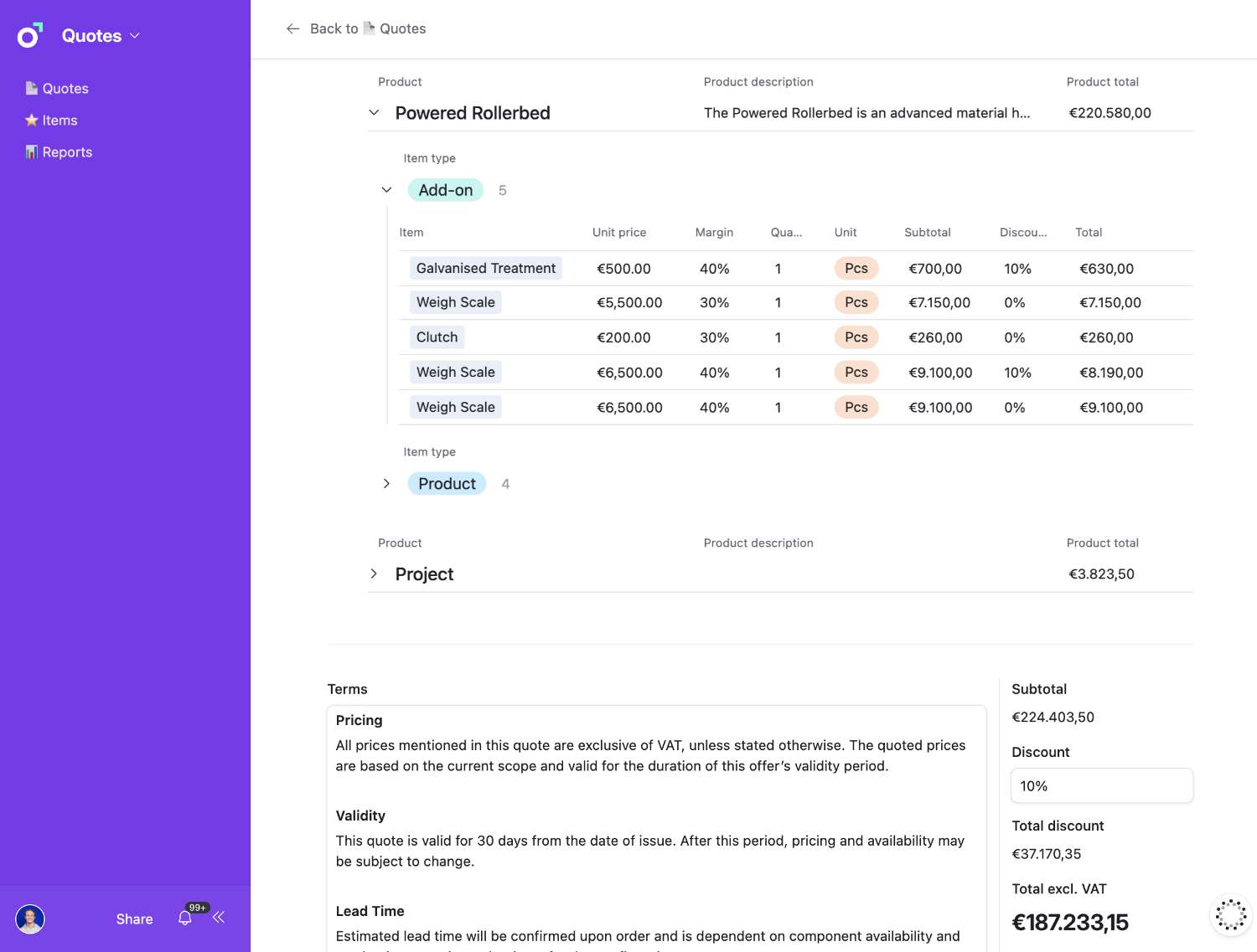 Apply margins and project costs instantly