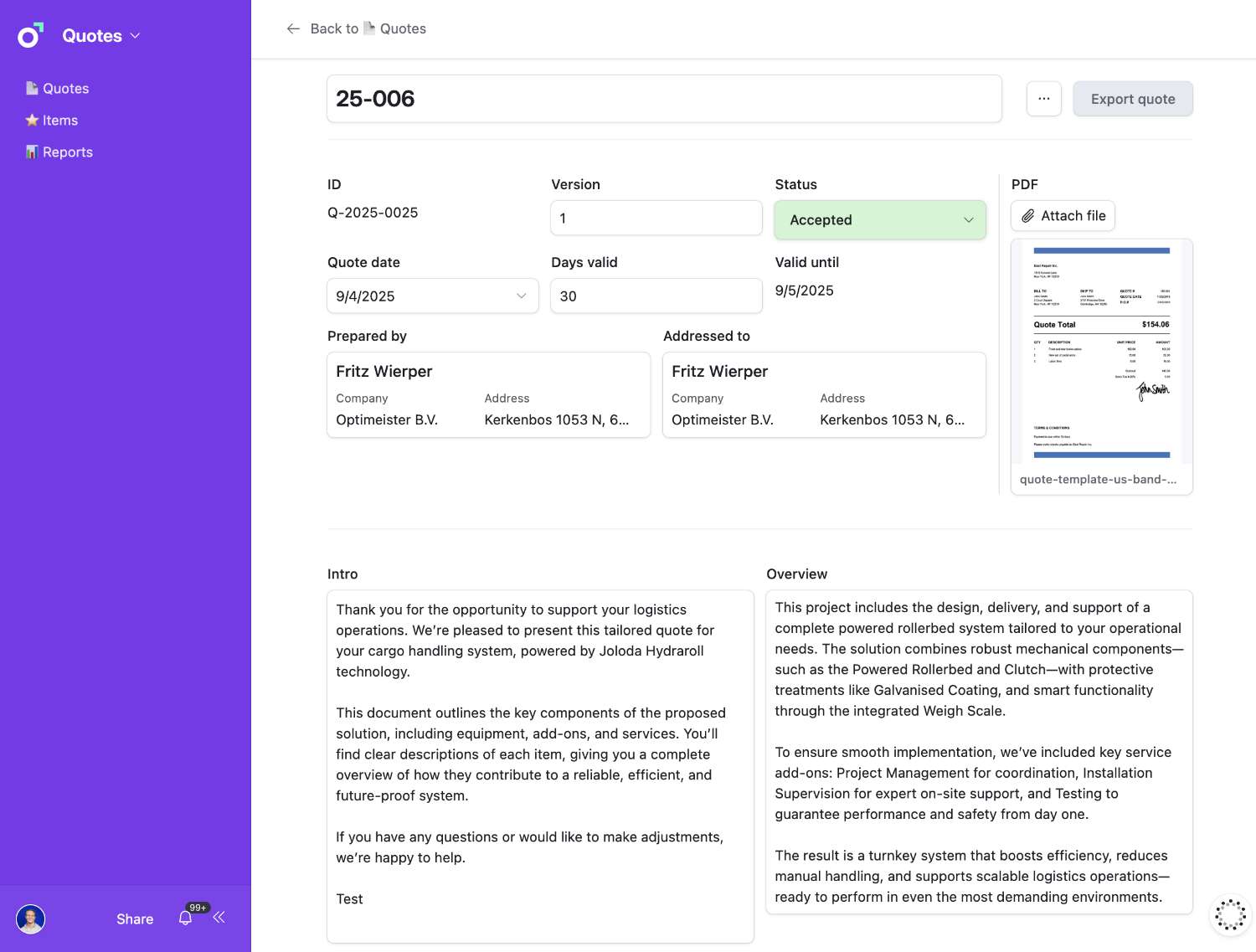 Export quotes as PDFs using custom templates