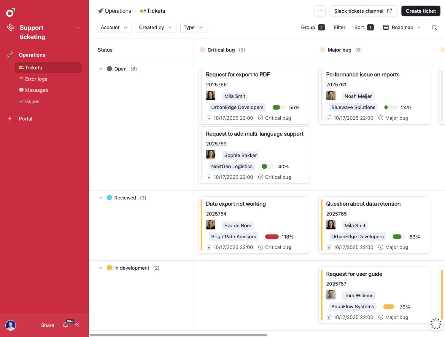 Centralized view of all tickets, issues, and priorities