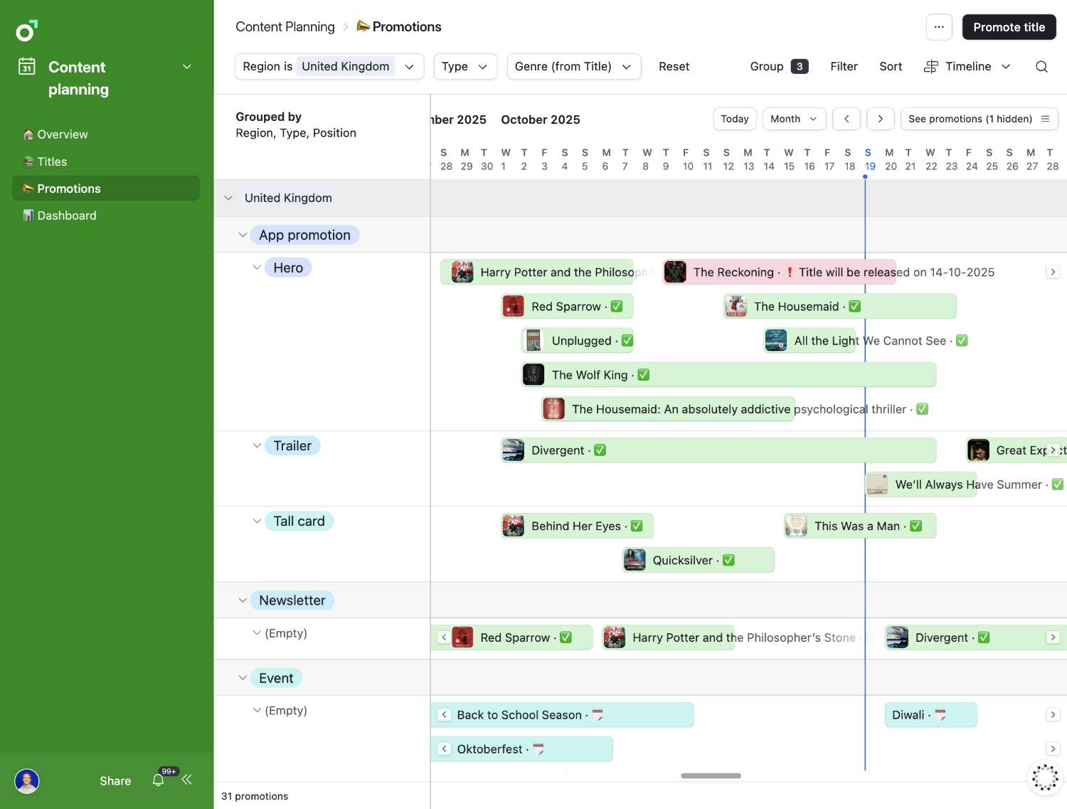 Centralized view of all campaigns and content
