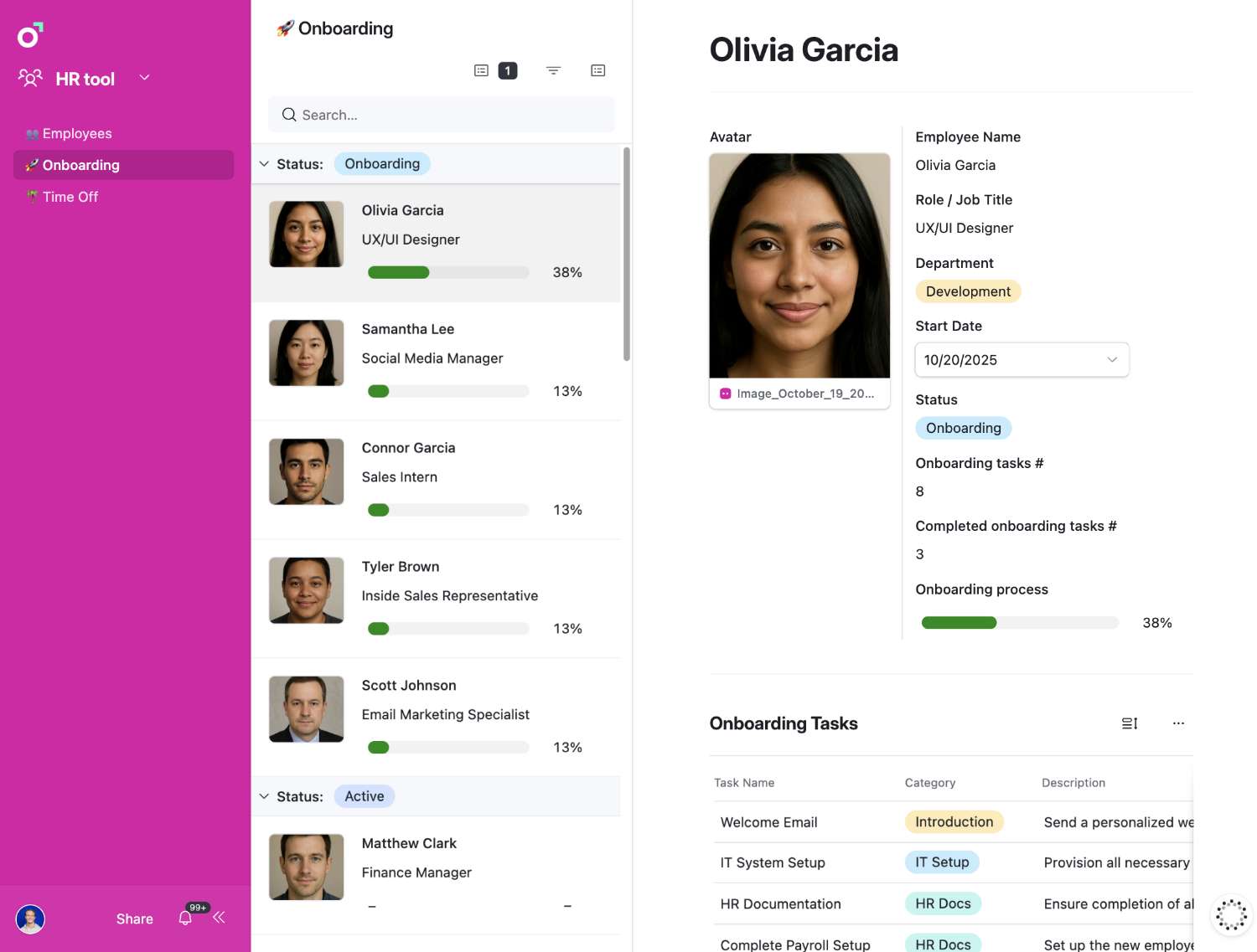 Onboarding tracker with tasks and progress