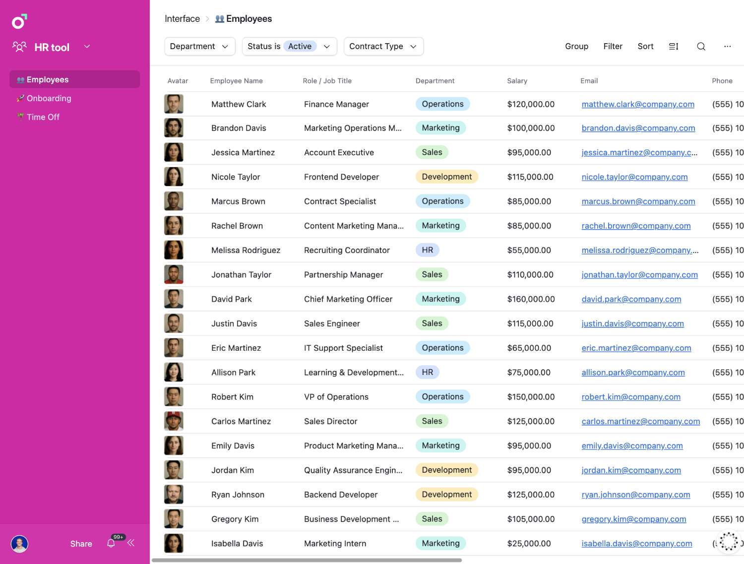 We built a HR management system in Airtable: